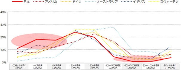 オーラルケアに関する商品で、最もよく買っている価格帯を聞いたところ、日本は6カ国の中でハブラシにかける費用が最も低いという結果となり、日本での購入価格帯で1本平均233円という結果になりました。