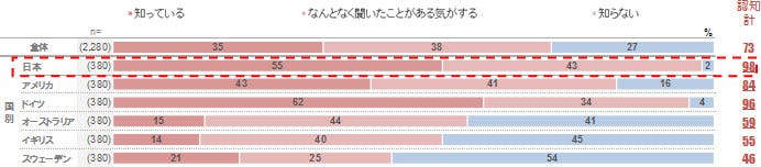 「歯周病をご存知ですか」という問いに対し、オーラルケア先進国の中でも最高の97.9%が認知しているという結果となりました。また、「自分が歯周病だと思うか」という問いに対し、「歯周病ではなく今後もならないと思う」と回答した人が17.1%で、2位のドイツ49.5%に対して大きく差が出ました。