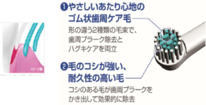 この度、「ついつい力を入れ過ぎてハグキを痛めてしまう」や「回転が強かったので、ハグキを傷めてしまう」などのお客様の声にお応えするため、やさしいあたり心地の歯周ケア毛や反転数低減機能などを採用し、歯垢除去とハグキケアを両立できる商品を開発するに至りました。