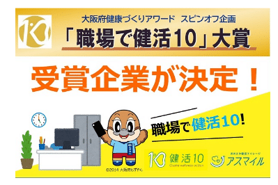 サンスター株式会社の関西支店は、健活おおさか推進府民会議主催の『「職場で健活10」大賞』にて、大阪府民の皆さんの投票により最上位の大賞を受賞しました。3月10日サンスターにて、大阪府よりトロフィ―の授与が行われました。