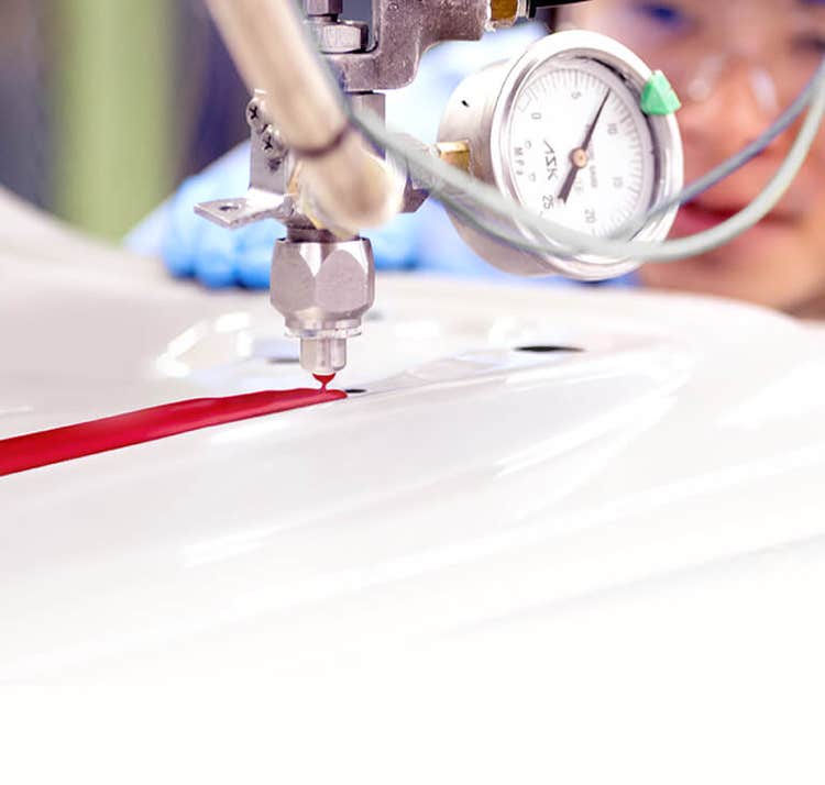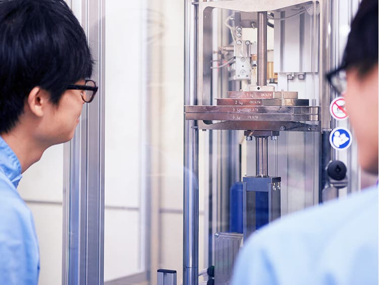 もし、接着剤に不備があれば、完成した自動車に乗車している人の安全性が損なわれます。そのため、サンスター技研の研究者たちは過去の経験からテストする項目を設定した「危険予知試験」を実施しています。例えば、接着剤の長期保管を想定して行う保存安定性試験では長期保管した後の性状や性能を評価して、長期保管前と品質が変わらないことを確認しています。たとえ想定外の使い方をしたとしても問題が起こらないようにテストを繰り返し開発してきました。