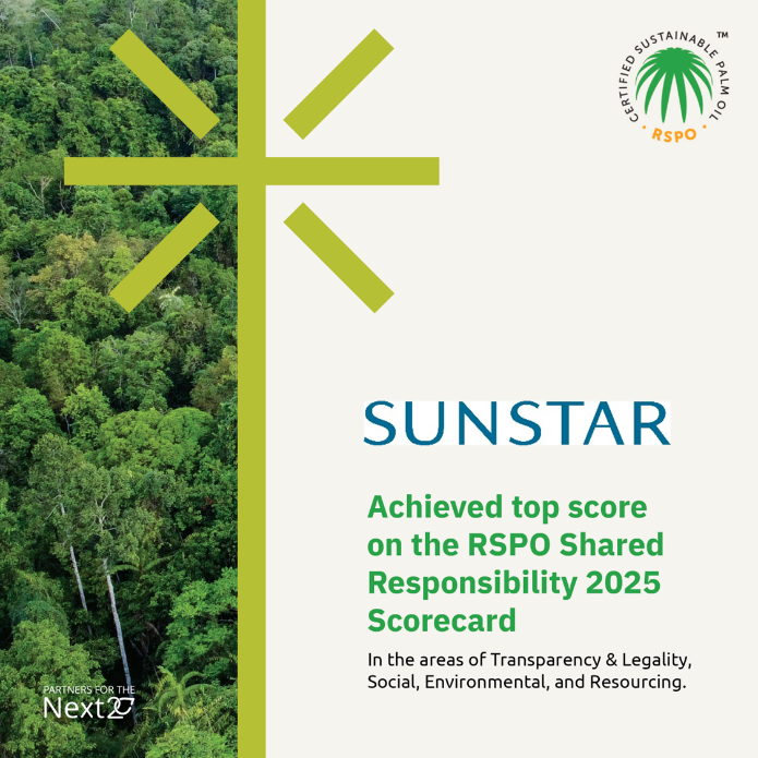RSPOのShared Responsibilityは、持続可能なパーム油のため 加盟企業・団体が目標達成に向けてどれだけ貢献しているかを評価するものです。サンスターは、年率12%のRSPO認証原料の増加や、RSPOの推奨計画通り実施していることから、8.5以上のトップスコアを獲得しました。
