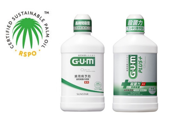 サンスター(株)山梨工場で生産する洗口液、液体ハミガキに、環境・人権に配慮したRSPO認証パーム油由来の 濃 グリセリンの使用を順次拡大。今後も採用比率向上に努めます。