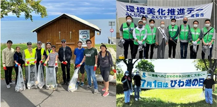 スイス本社ではレマン湖周辺の清掃イベントに社員が参加。日本でも工場や事業所ごとに社員が地域の清掃イベントに参加したり、工場周辺の定期的な清掃活動を行い、地域の環境保全に努めています。
