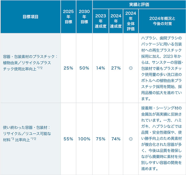| 2022 | 携帯用ハミガキセットのケースとハミガキキャップの軽量化 | 年間1.8トンのプラスチック削減 |