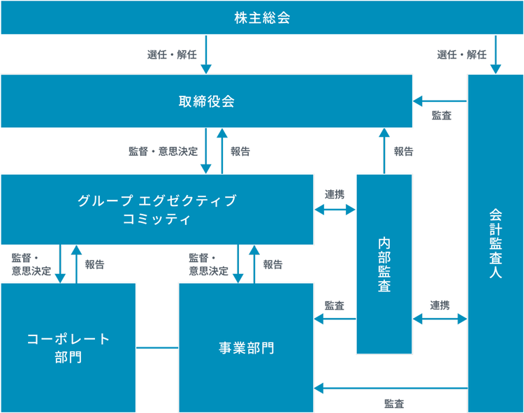 また、エグゼクティブ・コミッティは、透明性、コンプライアンス、継続的な改善を確保するために、内部監査部門とも密接に連携しています。