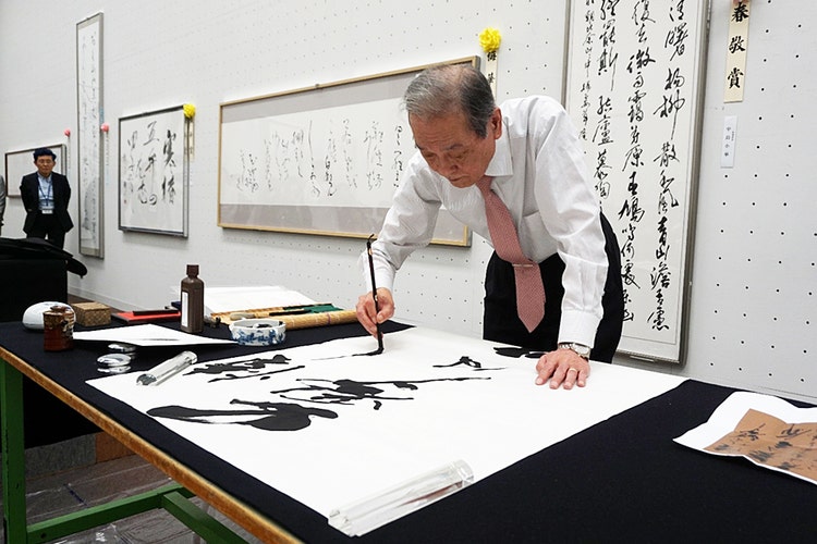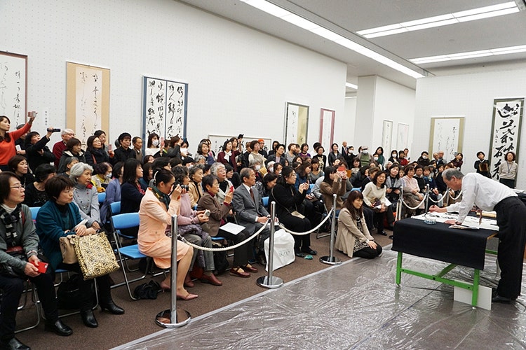 日書展で席上揮毫をする佐伯先生