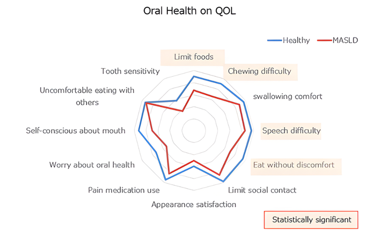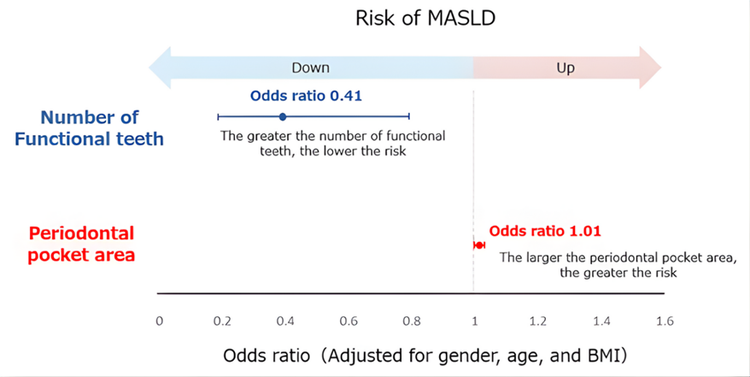 These findings indicate that MASLD is associated not only with periodontal disease, but also with oral functions such as the number of teeth that can chew properly, highlighting the importance of maintaining oral health.