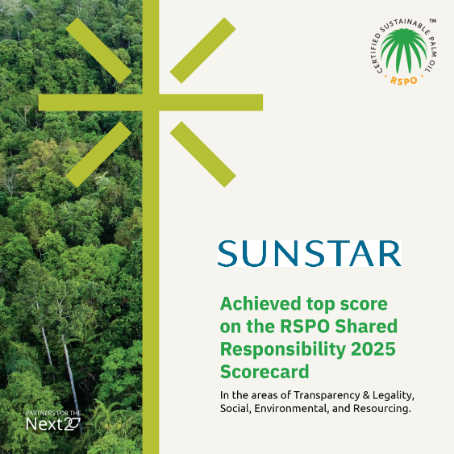 RSPO's Shared Responsibility evaluates how much member companies and organizations contribute toward achieving the goals for sustainable palm oil. Sunstar received a top score with over 8.5 due to its annual 12% increase in the use of RSPO-certified materials and its consistent implementation in line with RSPO’s recommended plans.