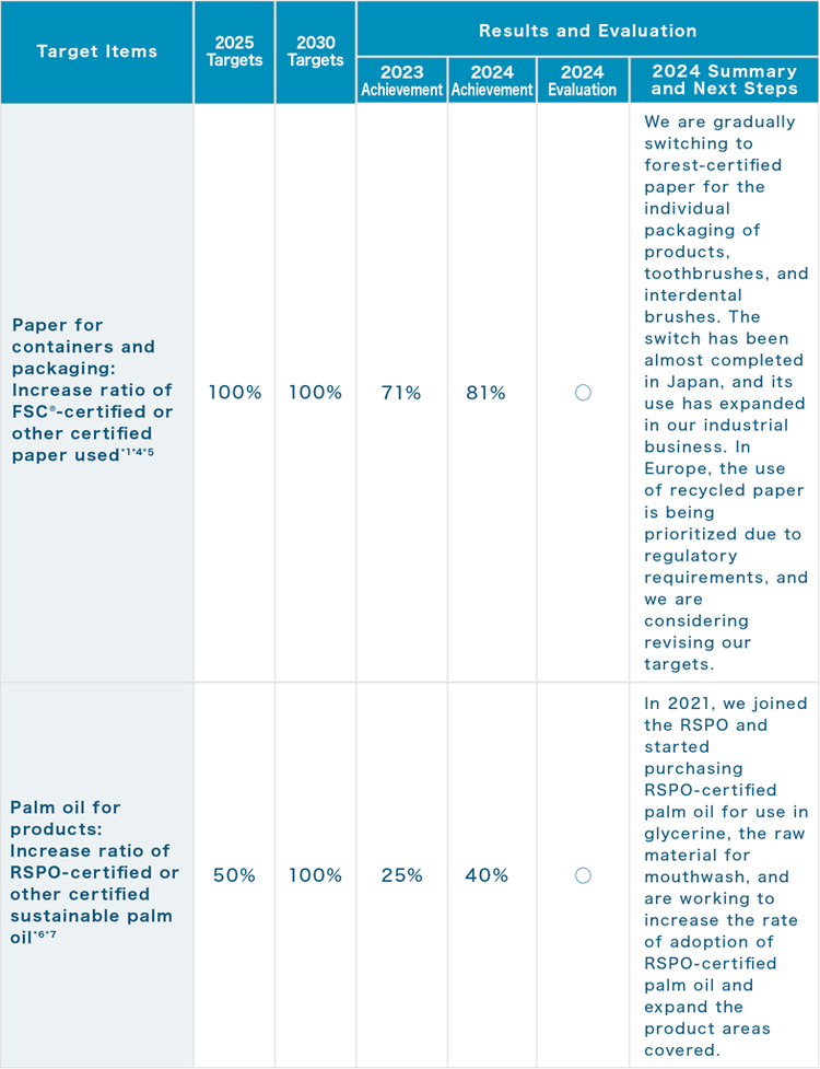 * Scope of data:Data from group-owned global plants is integrated. Electricity, water and CO₂ are counted for the US Oral care plant, and electricity and CO₂ are counted for Tsubamex