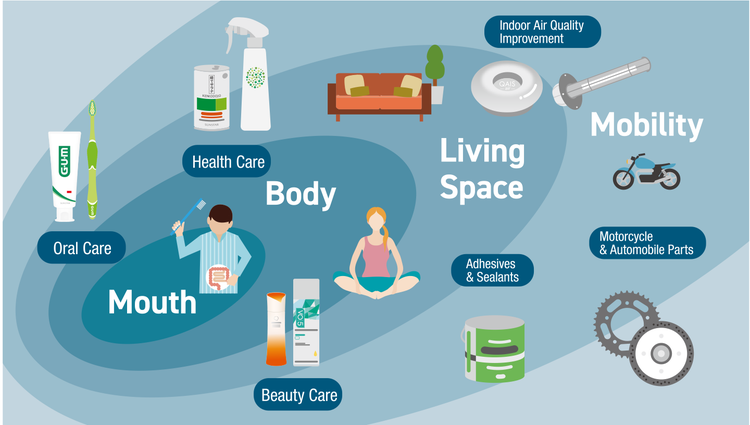 In order to realize its Corporate Motto and provide products and services for health promotion, Sunstar recognized that it ought to first ensure that its own employees were in good health. Accordingly, in 1985 the Sunstar Mind and Body Kenkodojo (health training center) was established to promote healthy lifestyle habits among its employees. Sunstar’s Kenkodojo brand of health foods was inspired by healthy food provided at this center. Indeed, in Japan, Sunstar has been recognized as Certified Health & Productivity Management Outstanding Organization every year since the Ministry of Economy, Trade and Industry launched the recognition program in 2017. In 2019, Sunstar launched its QAIS -air- range of deodorization and sterilization systems in a bid to improve health by effectively sterilizing, deodorizing, and controlling bacteria and viruses present in indoor air environments.