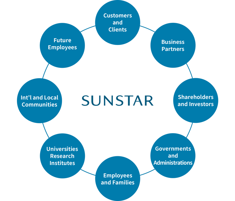 The Sunstar Group has set “partnership” as a priority aspect of its Long-Term Vision. We commit to forming close relationships and work hand-in-hand with customers, members of the local community, experts in various fields, business partners, and others, forming excellent partnerships through the proactive disclosure of information and by helping solve key societal issues.