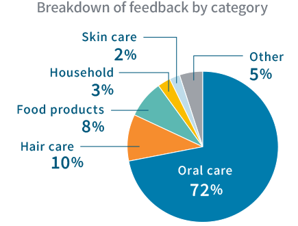 In FY2024, the Customer Help Desk received around 19,800 instances of feedback. The breakdown by product category was 72% oral care, 10% hair care, 8% food products, 3% household, 23% skin care, and 5% other. Looking at the inquiries by age group, over 75% of inquiries were from those over 60, indicating that people are becoming more aware of their oral and general health as we approach the era of 100-year lifespans. Sunstar practices “quality management” and strives to provide safe and high-quality products that customers can use with full confidence.