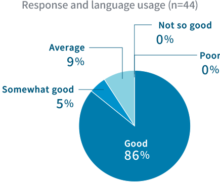 Looking to improve our customer service in Japan, the Customer Help Desk regularly conducts customer satisfaction surveys. We aim to achieve a satisfaction level of 85% or above. After analyzing previous results and taking measures to improve our score, the satisfaction level in FY2024 was 91% (satisfied and mostly satisfied). In addition, we received 91% satisfaction (good and somewhat good) in terms of response and language usage, and received positive comments and feedback from users. We will continue to be a Customer Help Desk that listens carefully to every single customer’s feedback in an effort to further meet their expectations.